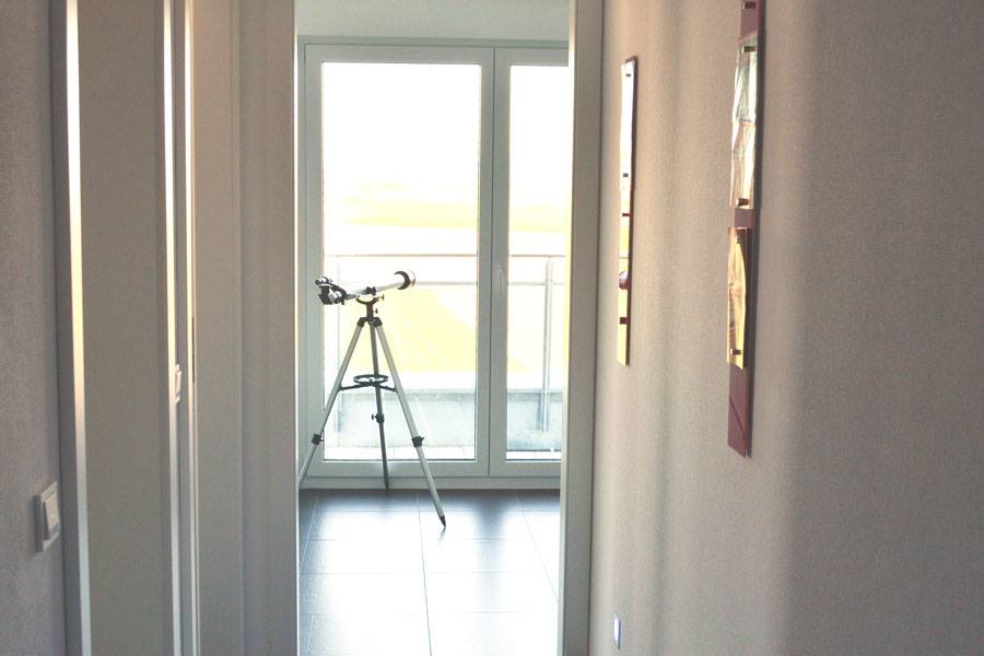 Das im Jahr 2014 fertig gestellte Penthouse ist stilvoll eingerichtet und bietet einen hochwertig und voll ausgestatteten Wohnraum mit offener Küche. Zudem überzeugt die Wohnung durch ein helles Tageslichtbad mit Badewanne, bodentiefer Dusche und einem separaten Gäste-WC. Ein Arbeitszimmer mit Airprinter und Schreib-utensilien stehen ebenfalls für Sie bereit. Alle Zimmer sind mit italienischen Loungefliesen und einer Fussbodenheizung versehen. Zudem wurde ein eigens konzipiertes Beleuch-tungssystem mit LEDs und Halogen installiert. Ihr Auto hat per Funkdrücker Zugang zur Tiefgarage und parkt auf einem festen Stellplatz. Von dort aus fahren Sie mit dem Fahrstuhl in das DG in der 6. Etage. Die Waschmaschine und der Trockner befinden sich ebenfalls auf Ebene der Tiefgarage. In den Nebenkosten sind die Versorgungs- und Hausmeisterkosten sowie die GEZ- Gebühren enthalten. Freies W-Lan und Kabelgebühren sind ebenfalls inklusive.